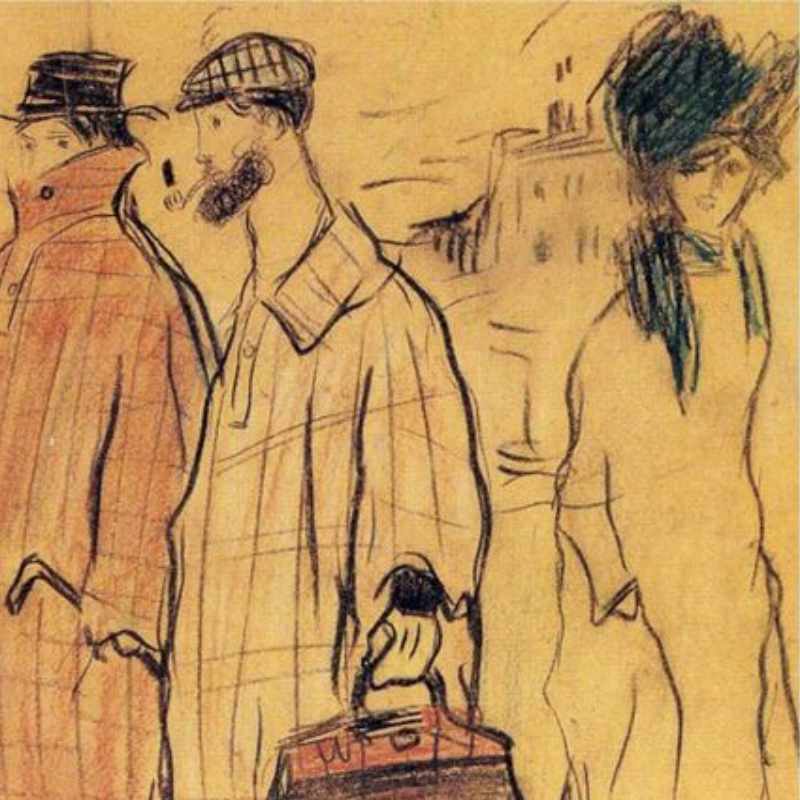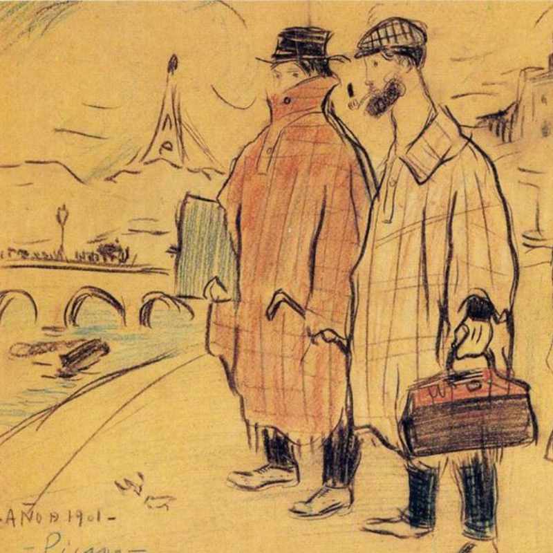 When young Pablo Picasso decided to permanently move to Paris, and take his art career to a new level he was accompanied by a friend Sebastià Junyer Vidal. The two moved into a studio at 13 Rue Ravignan that was quickly dubbed the Bateau Lavoirr, a nickname inspired by its similarity with a Seine laundry barge. Two Spaniards remained friends for many years to come and their relationship was immortalized in several art pieces including this famous sketch.